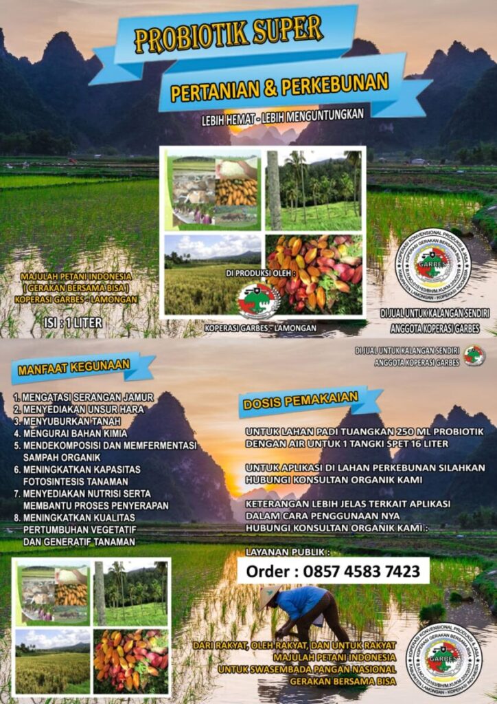 Probiotik Super untuk pertanian dan perkebunan, buatan Koperasi Garbes Lamongan. Foto : Ist. Koperasi Garbes.