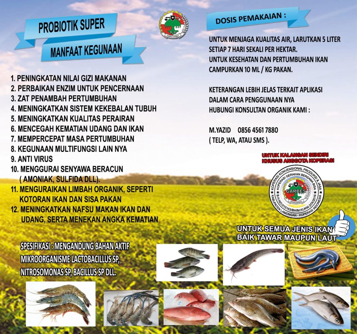 Probiotik Super untuk perikanan, buatan Koperasi Garbes Lamongan. Foto : Ist. Koperasi Garbes.