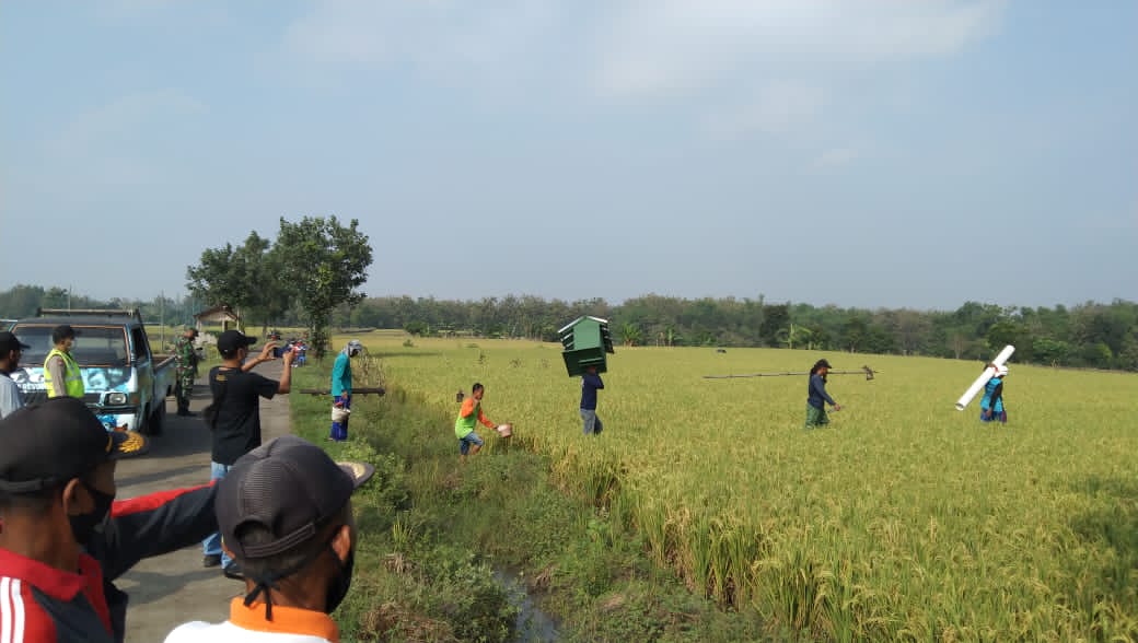 Pada pemasangan rumah burung hantu itupun, Suharyanto tak sendirian. Ia bersama Babinkamtibmas dan Petugas Hama dan Penyakit Kecamatan Sambeng, Penyuluh Pertanian Lapangan Kecamatan Sambeng, dan Ketua Gapoktan Lestari. Serta dibantu para petani lainnya.