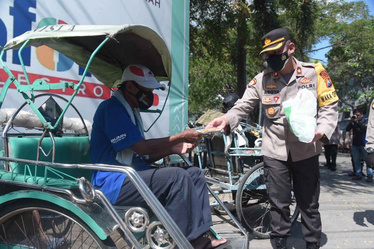Kegiatan bansos Presisi tersebut merupakan bentuk kepedulian Polres Lamongan beserta instansi terkait terhadap masyarakat yang membutuhkan. Bantuan berupa paket sembako, vitamin, dan masker diberikan kepada 100 orang yang bekerja sebagai tukang becak di jalan Panglima Sudirman.