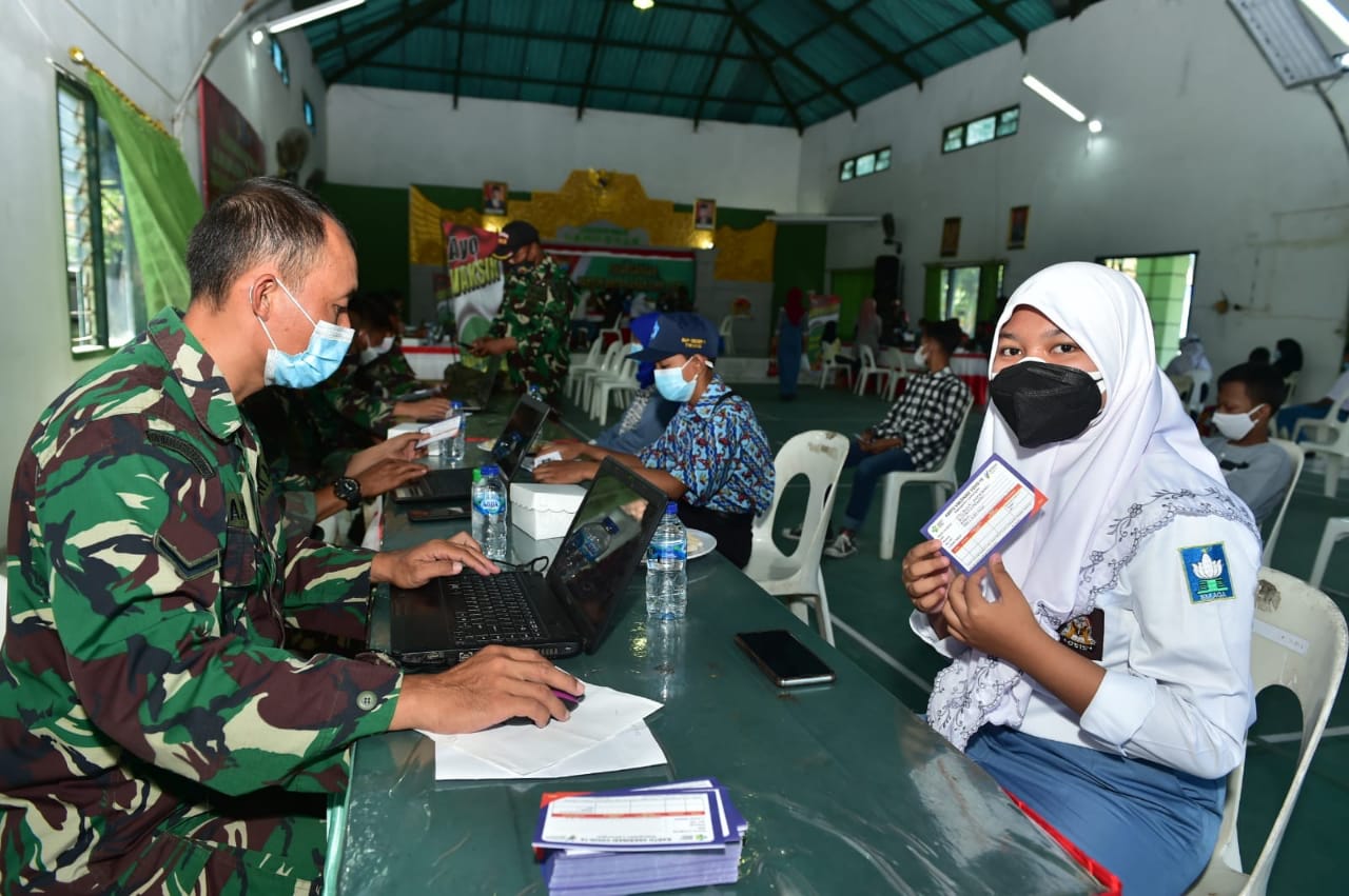 “Hari ini disiapkan 500 dosis vaksin untuk anak SMP dan SMA. Alhamdulillah berjalan lancar dan semoga begitu juga kedepannya. Ini semua berkat kerjasama tiga pilar yakni Pemda, TNI dan Polri begitu juga dengan dukungan masyarakat,” imbuh Bupati YES.