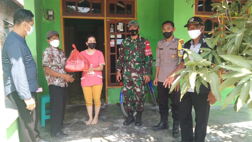 Babinsa Koramil 0812/02 Deket bersama Bhabinkamtibmas membagikan paket Sembako kepada warga kurang mampu di wilayah Kecamatan Deket.