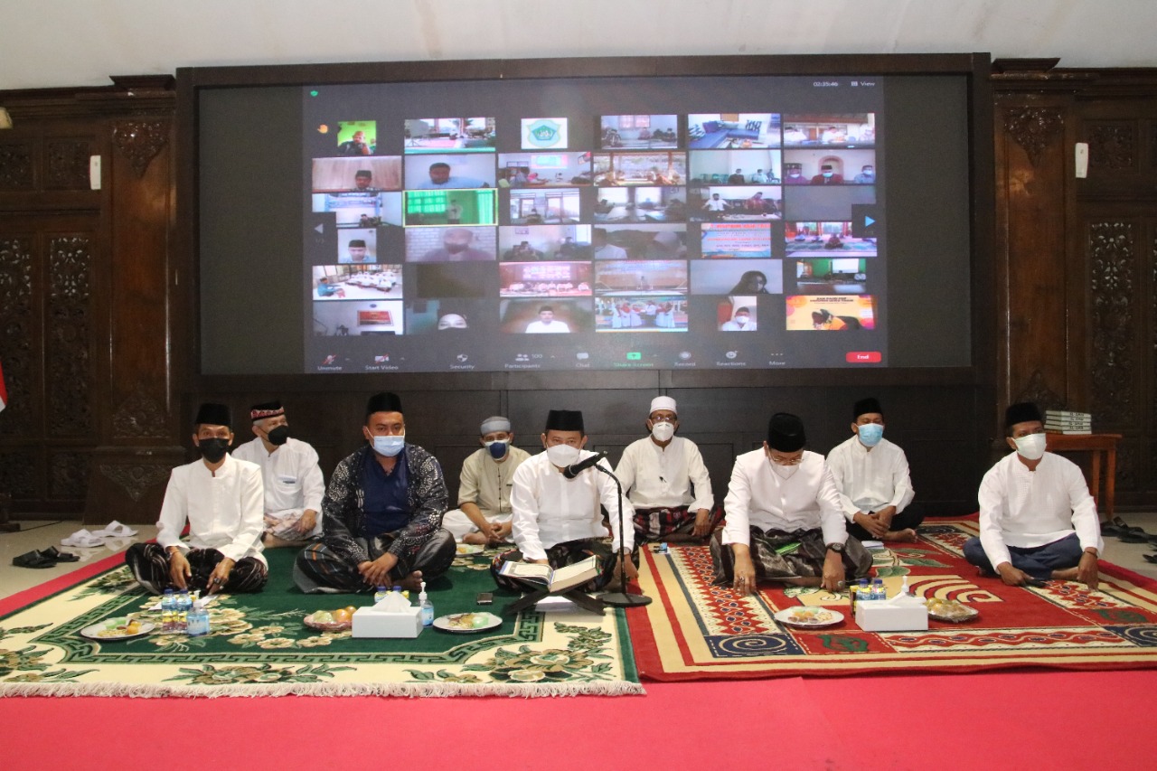 Kabar1lamongan.com – Pemerintah Kabupaten Lamongan melaksanakan khotmil Qur’an di Pendopo Lokatantra Kabupaten Lamongan sebagai bentuk usaha batin penanganan covid-19 di Lamongan. Mengambil momen di Hari Arafah yang jatuh bertepatan pada hari ini, Senin (19/7), Pemkab Lamongan menggelar kegiatan munajat secara virtual.