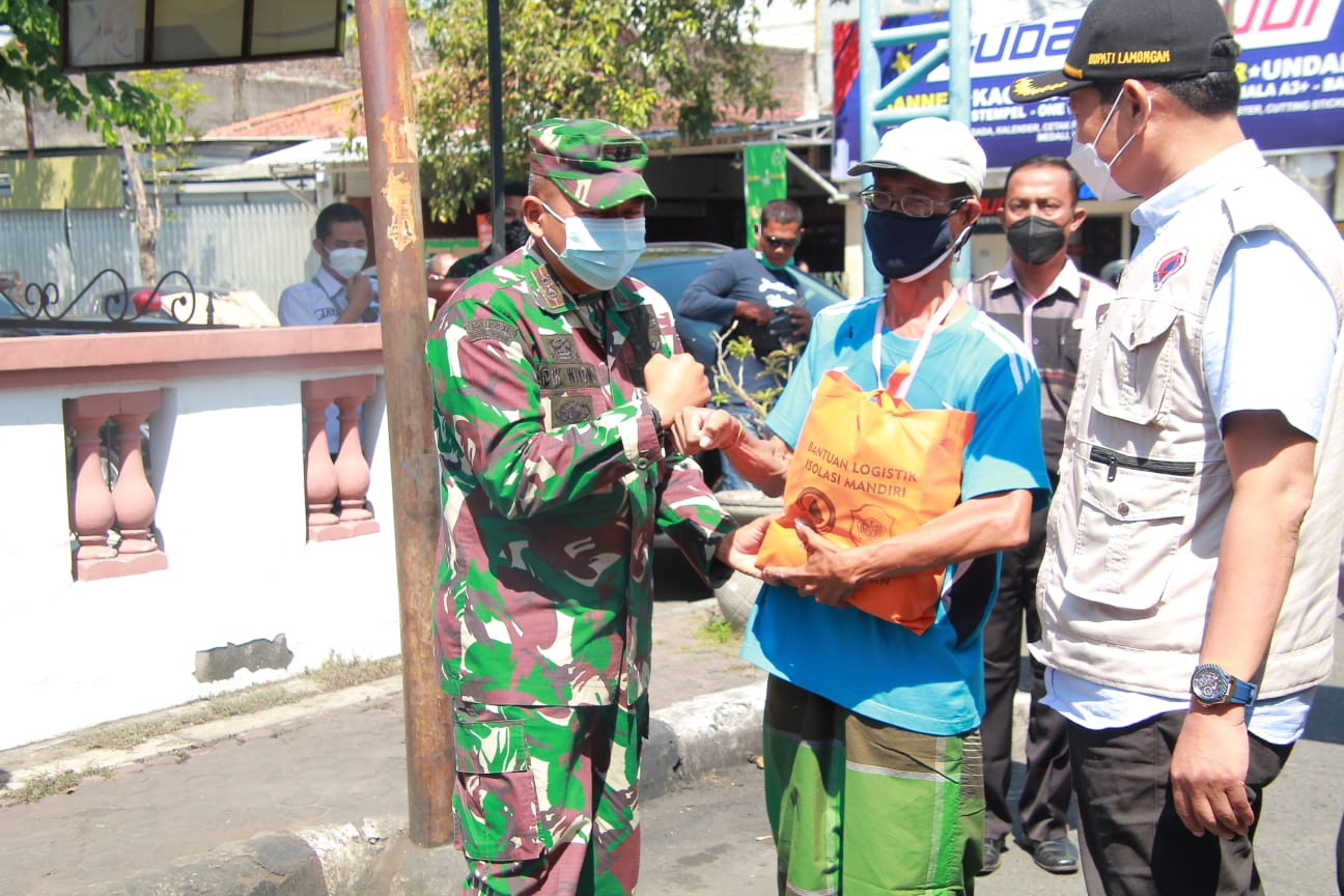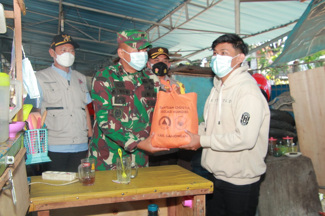 Saat turun ke para pedagang kaki lima, Bupati Lamongan bersama Forkopimda menyalurkan paket sembako kepada masyarakat terdampak.