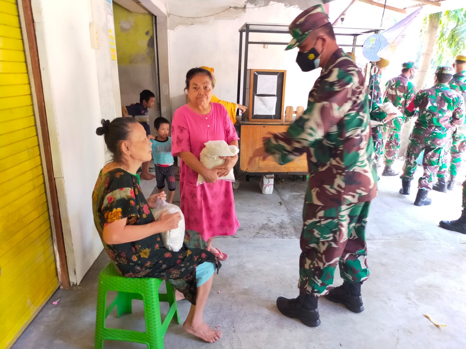 Kabar1Lamongan.com – Keluarga besar TNI Kodim 0812 Lamongan turun ke masyarakat menyalurkan paket sembako untuk warga terdampak Covid – 19 dan Pemberlakuan Pembatasan Kegiatan Masyarakat Levek 4, Rabu (28/7) di sepanjang Jl. Veteran.