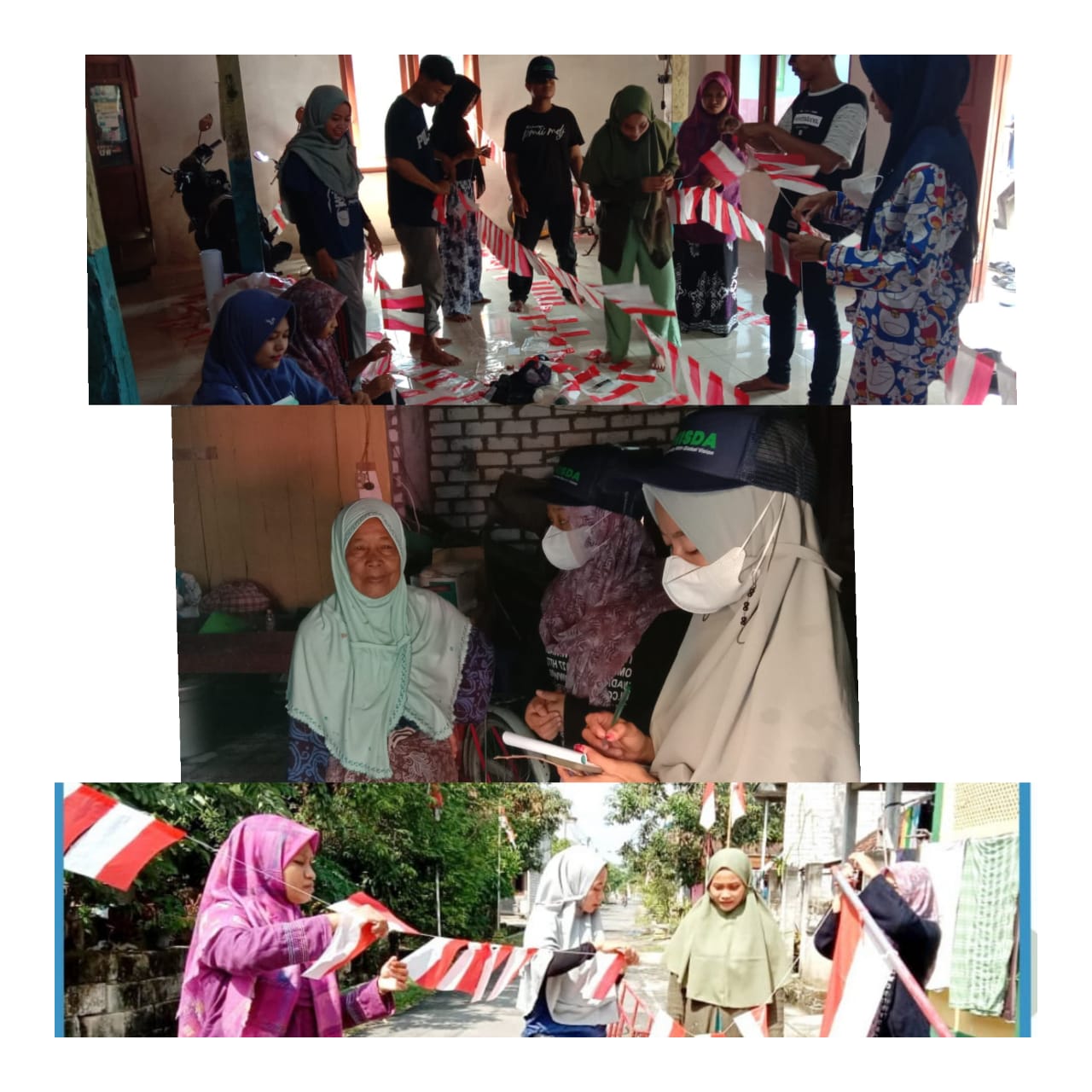 Kegiatan ini dilakukan oleh seluruh kelompok 13 yang berjumlah 13 orang, bersama-sama menghimbau masyarakat untuk serentak melakukan pemasangan bendera merah putih.