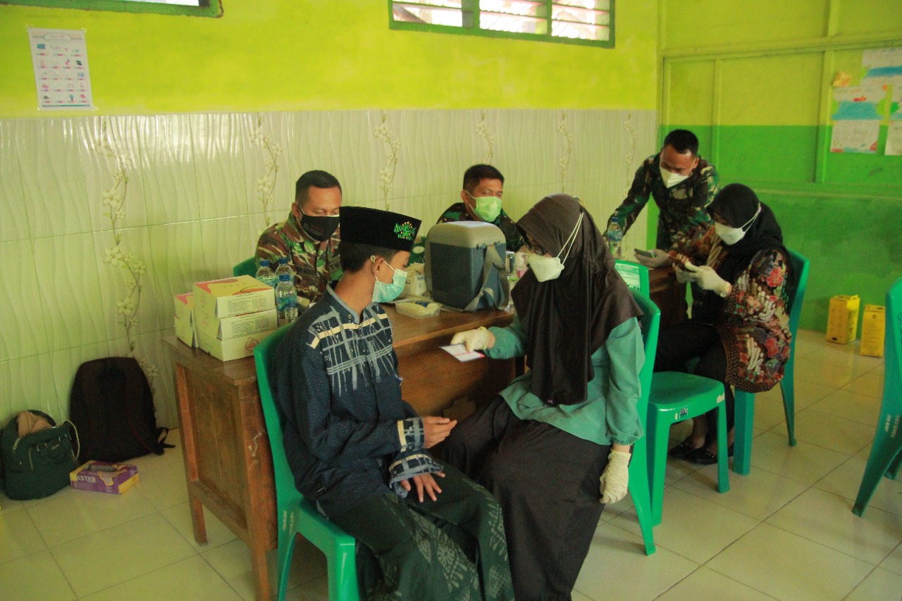 Kabar1Lamongan.com – Serbuan vaksinasi Dosis ke dua Kodim 0812/Lamongan kali ini menyasar santri Pondok Pesantren (Ponpes) Matholi’ul Anwar kecamatan Karanggeneng kabupaten Lamongan, Selasa (24/08/2021).