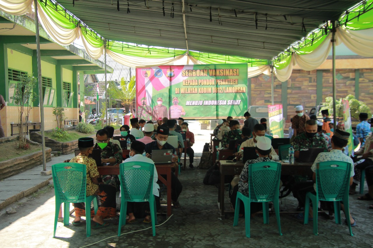 Dalam pelaksanaan Vaksin dosia kedua ini,” Komandan Kodim (Dandim) 0812 Lamongan Letkol Inf Sidik Wiyono disela kegiatan mengatakan, Pondok Pesantren (Ponpes) Matholi’ul Anwar menjadi lokasi untuk sasaran vaksinasi santri.