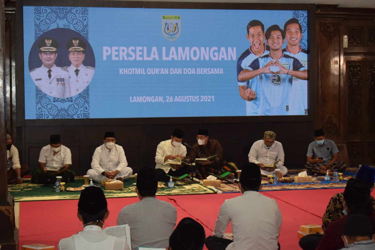 Kabar1Lamongan.com – Keseimbangan fisik dan pengendalian emosi sangat penting bagi seorang pemain sepak bola untuk mendapat kemenangan. Hal itu diutarakan Bupati Lamongan Yuhronur Efendi dalam acara Khotmil Qur’an dan Doa Bersama untuk Persela Lamongan dalam menyambut turnamen Liga 1 di Pendopo Lokatantra, Kamis (25/8) malam.