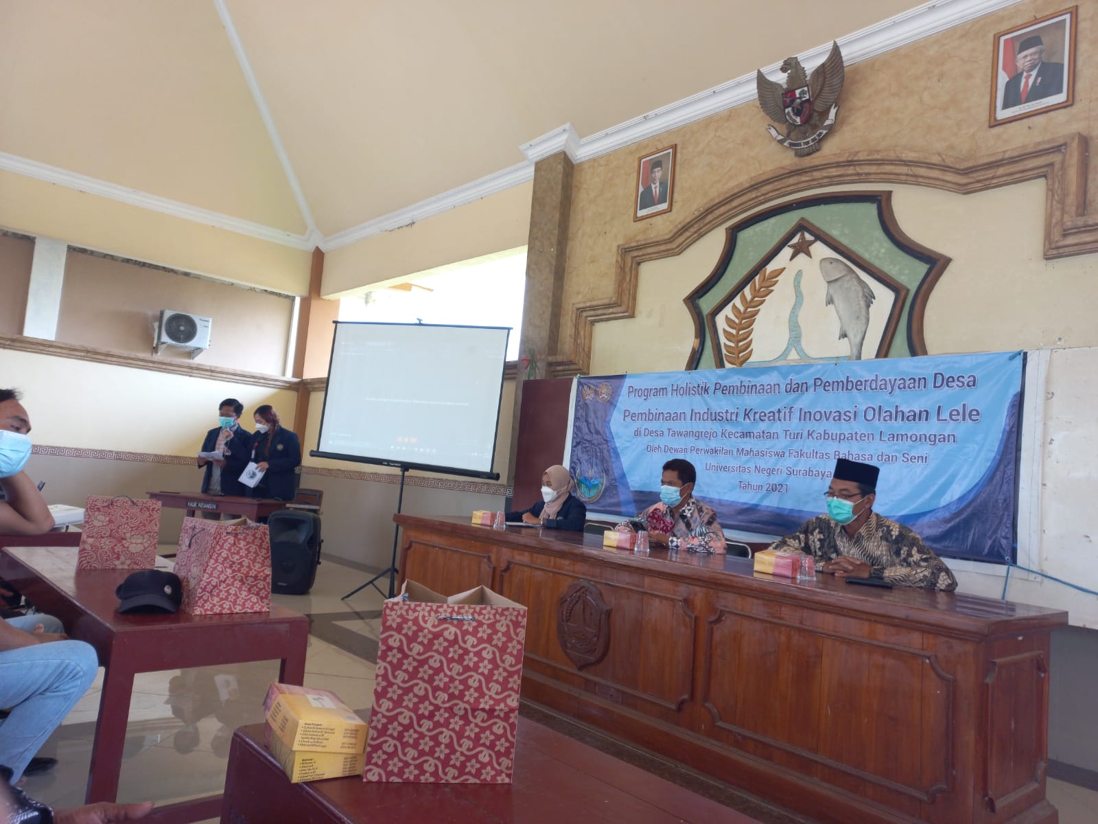 Tim dari Universitas Negeri Surabaya (Unesa) melaksanakan sosialisasi kepada masyarakat Desa Tawangrejo, Kecamatan Turi, Kabupaten Lamongsn, Jawa Timur pada Sabtu (04/09/2021).