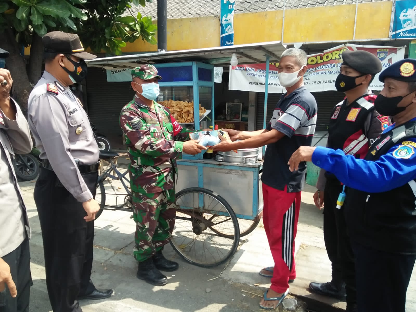 Selain patroli PPKM juga melaksanakan Bansos dengan Sasaran kepada warga dan Pedagang