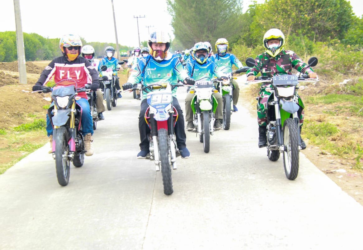 Dengan mengendarai motor trail, Bupati Yes bersama rombongan memulai kegiatan jelajah potensi daerah di Lamongan bagian utara.