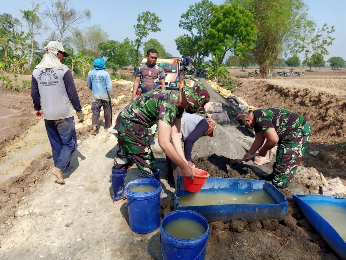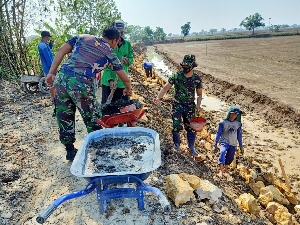 Kabar1lamongan.com – Anggota Koramil 0812/25 Sarirejo jajaran Kodim 0812/Lamongan menggelar karya bakti bersama perangkat dan warga dalam membangun plengsengan jalan pertanian di Desa Canggah Kecamatan Sarirejo Kabupaten Lamongan, Jawa Timur, Sabtu (23/10/2021).