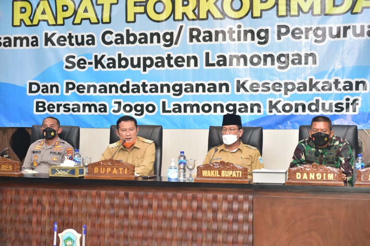 “Silaturrahmi ini adalah ikhtiar kita bersama untuk mencari sebuah upaya, yakni bersama-sama jogo Lamongan Kondusif. Lamongan yang selama ini sudah baik mari kita tingkatkan lagi,” tutur Bupati Yes saat memberi arahan dalam Rapat Forkopimda Bersama Ketua Cabang/Ranting Perguruan Silat Se-kabupaten Lamongan dan Penandatanganan Kesepakatan Bersama Jogo Lamongan Kondusif.