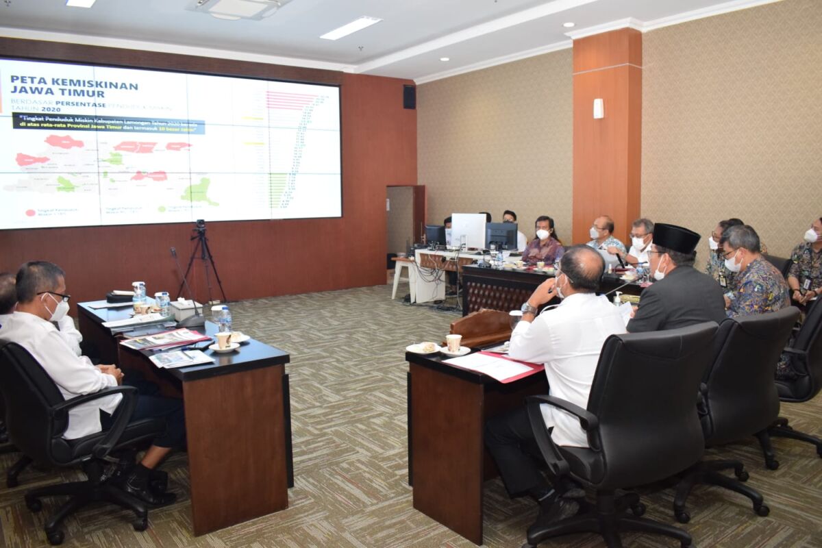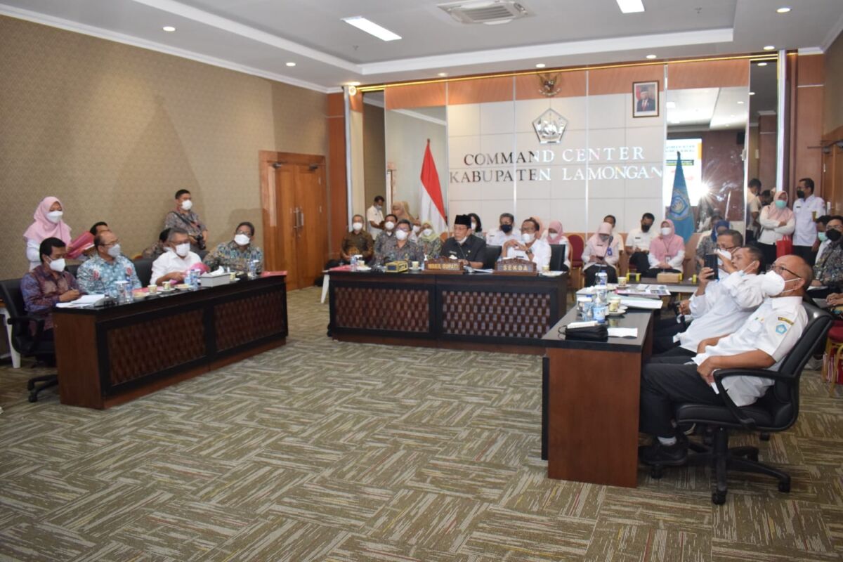 kabar1lamongan.com – Setelah sebelumnya Gubernur Jawa Timur Khofifah Indarparawansa terjun langsung ke Kabupaten Lamongan untuk melakukan konsolidasi data kemiskinan ekstrem, kini giliran Deputi Bidang Koordinasi Peningkatan Kesejahteraan Sosial Kemenko Bidang Pembangunan Manusia dan Kebudayaan (Kemenko PMK) yang hadir di Lamongan. Bersama rombongan Asisten Deputi Penanganan Kemiskinan Kemenko PMK, Direktur Rumah Khusus Kementrian Pekerjaan Umum dan Perumahan Rakyat (Kemen PUPR), Direktur Pelaporan dan Statistik Badan Kependudukan dan & Keluarga Befencana Nasional (BKKBN), Direktur Pengambangan Kawasan Pemukiman Kemen PUPR serta Kepala Badan Pengembangan Infrastruktur Wilayah diterima langsung oleh Wakil Bupati Abdul Rouf di Command Center Pemkab Lamongan, Rabu (27/10).