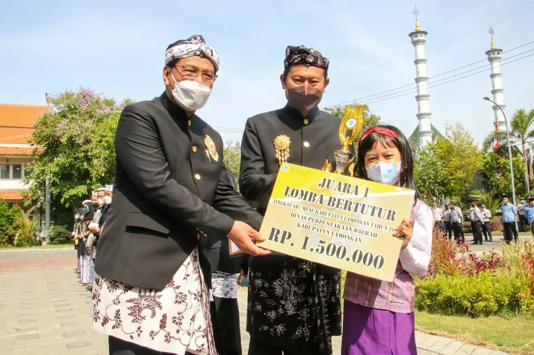 Selain menyerahkan penghargaan pemuda pelopor Lamongan 2021, dalam kesempatan tersebut Bupati YES juga menyerahkan kendaraan dinas roda dua kepada penyuluh KB Dinas Pengendalian Penduduk dan Keluarga Berencana Kabupaten Lamongan dan menyerahkan hadiah kepada pemenang lomba bertutur tingkat SD/MI Se- Kabupaten Lamongan. (**)