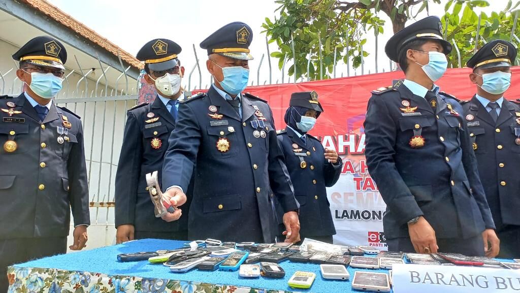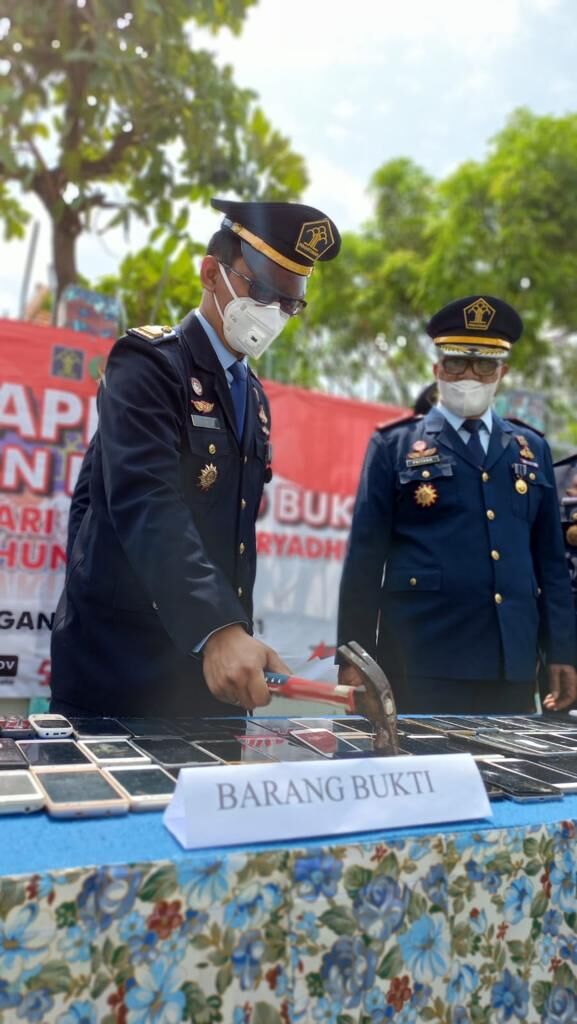 Usai kegiatan Upacara dilanjutkan dengan giat pemusnahan Barang Bukti (BB) hasil Operasi Penggeledahan (OP) oleh tim Satgas Kamtib dan Satopspatnal selama kepemimpinan Kalapas Lamongan Supriyana.