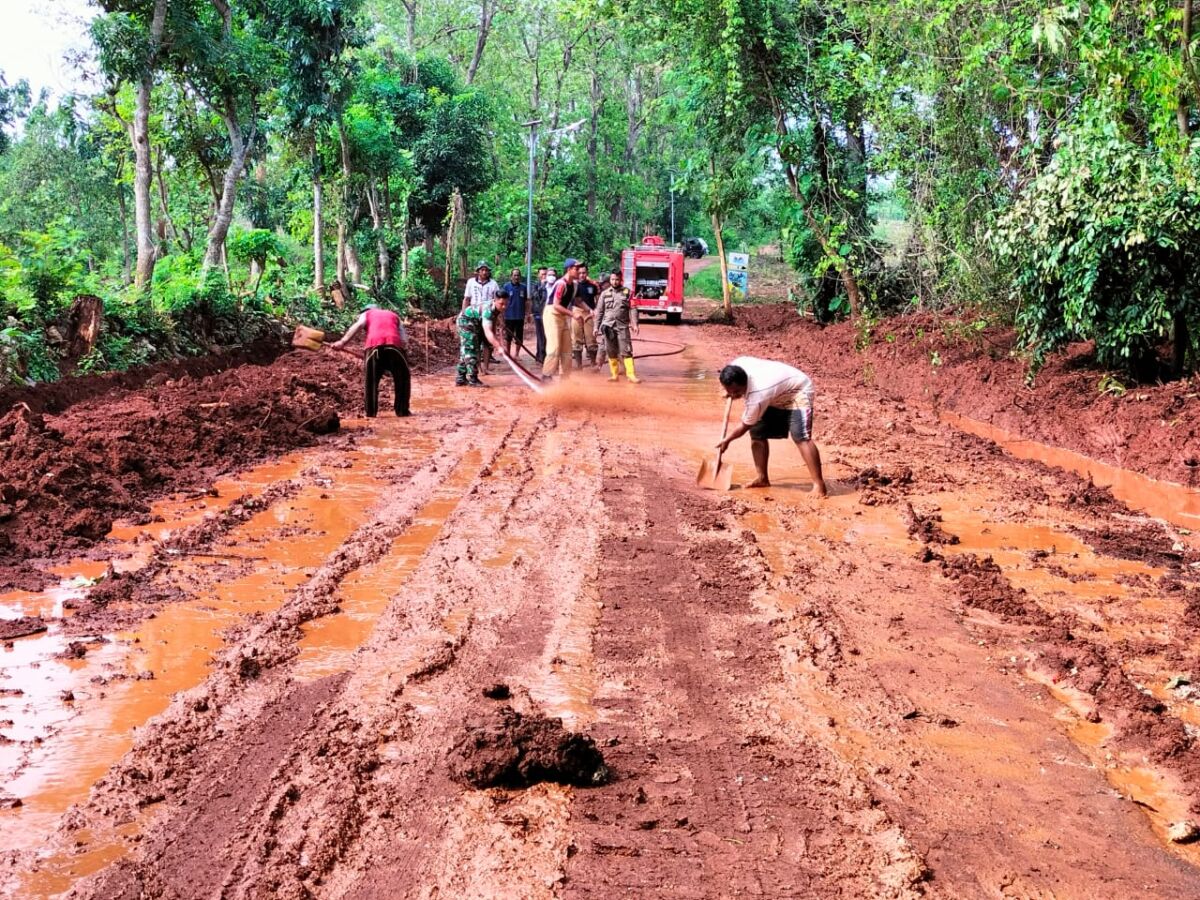Dengan memaksimal alat berat, diharapkan timbunan tanah ini dapat segera teratasi. Sehingga jalan dapat dilalui baik oleh kendaraan roda dua dan roda empat