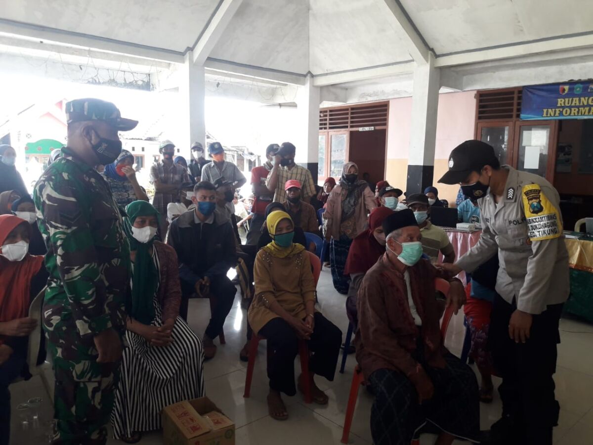 “Vaksin Covid-19 ini aman dan halal, jadi saya harap warga tenang dan jangan percaya isu hoax yang berkembang di media sosial, Efek samping dari Vaksinasi ini biasanya hanya sedikit mengantuk dan perasaan lapar saja karena saya sudah di vaksinasi jadi saya sudah merasakannya” ujar Babinsa Tikung Serda Fadli.