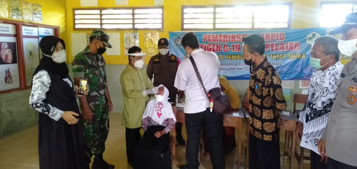 Danramil 0812/23 Solokuro Kapten Inf Mulyanto menyampaikan bahwa pelaksanaan Rapid Test Antigen di SMP tersebut bertujuan untuk memastikan semua tenaga pendidik dan siswa-siswi negatif covid-19, sehingga aman dalam menjalani proses belajar mengajar.