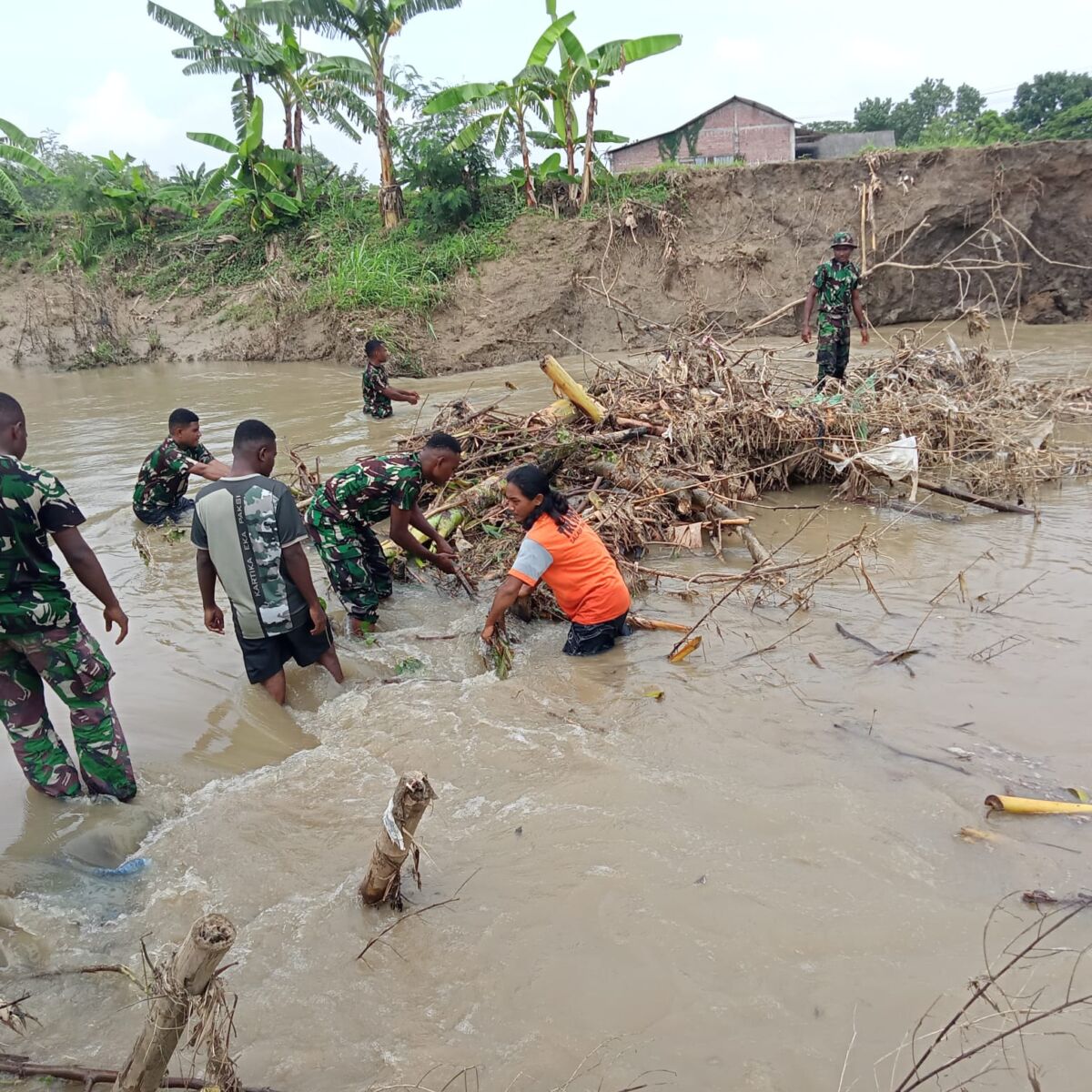 Kabar1Lamongan.com – Hujan deras yang melanda kabupaten Lamongan akhir- akhir ini membuat anggota TNI Polri bersama pemerintah daerah dan BPBD selalu siaga dan sigap bersama masyarakat melakukan aksi karyabakti dalam pembersihan aliran sungai.