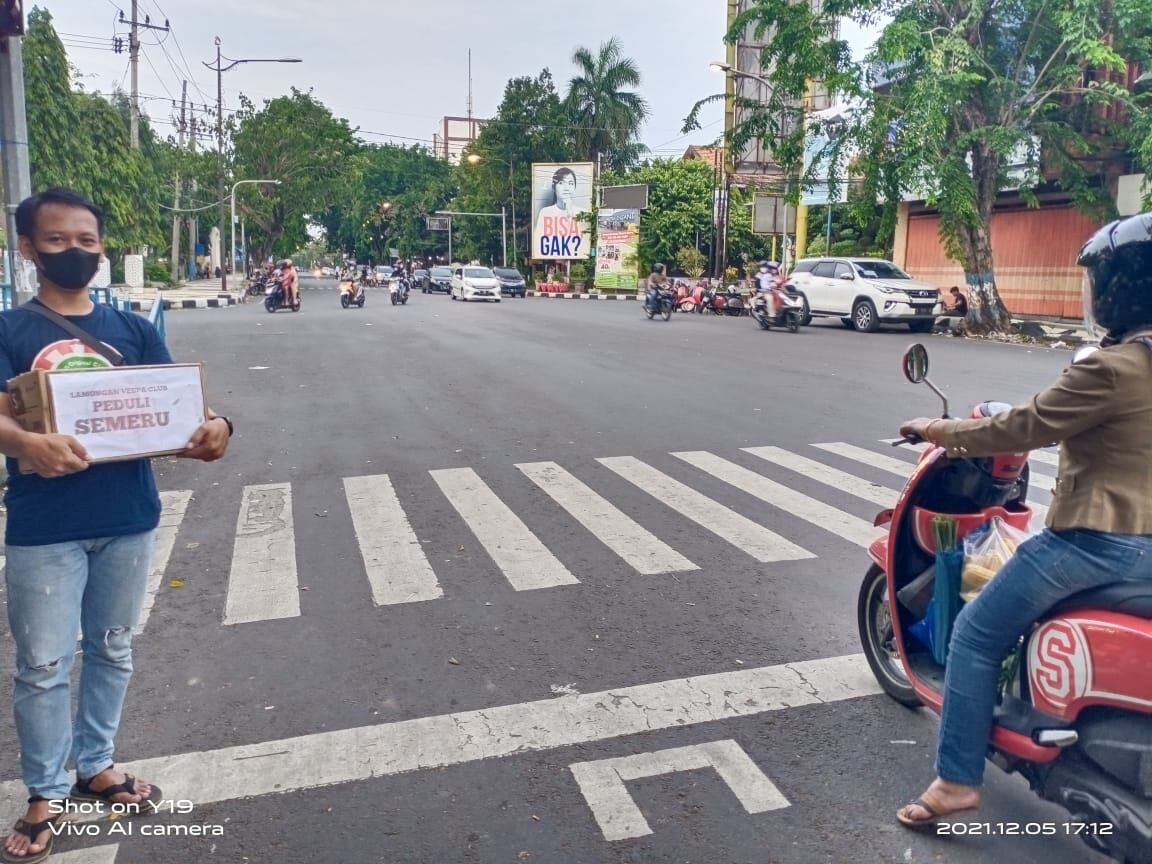 Kabar1lamongan.com – Hari ini Rekan-rekan Komunitas Lamongan Vespa Club (LVC) melakukan aksi sosial, “Peduli Semeru,” puluhan anggota pengemar motor Vespa itu dengan sigap dan cepat turun langsung ke jalan untuk menggalang bantuan bagi masyarakat terdampak erupsi gunung Semeru di Lumajang, Jawa Timur. Kegiatan yang di mulai dari pagi sampai menjelang sore hari itu dilakukan dengan bergantian oleh seluruh anggota LVC kabupaten Lamongan, Minggu (5/12/2021).