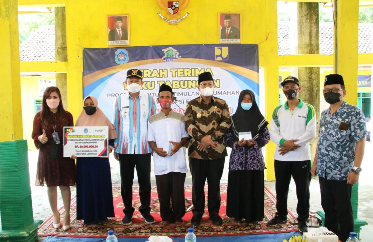 Bupati Lamongan Yuhronur Efendi hadir ditengah-tengah masyarakat untuk menyerahnya secara langsung Buku Tabungan (Serbutab) program BSPS di wilayah extrem di Balai Desa Kedungwaras Kecamatan Modo, Jumat (10/12). Hadir pula dalam acara Wabup Abdul Rouf, Brand Manajer Bank Mandiri KCP Lamongan Nur Rahmawati, serta seluruh kepada OPD terkait.