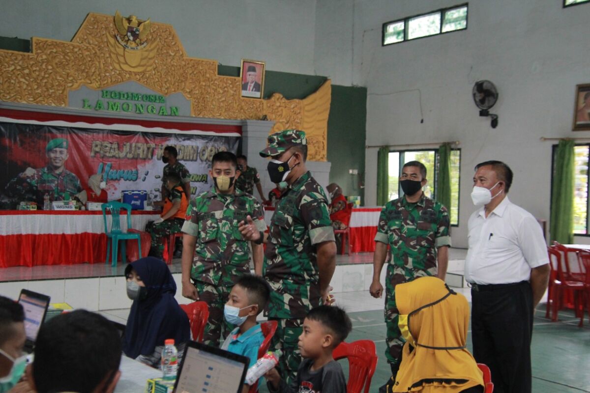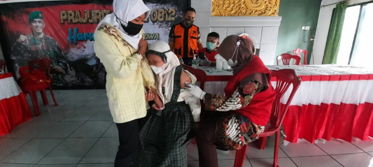 Kabar1Lamongan.com -Kodim 0812/Lamongan mengandeng Poskes Lamongan mulai menggelar serbuan vaksinasi covid-19 bagi anak usia 6-11 tahun di Makodim 0812/Lamongan. Vaksinasi ini dilakukan sebagai upaya untuk membentuk kekebalan kelompok dan mencegah penularan virus Covid-19. kamis (16/12/2021)