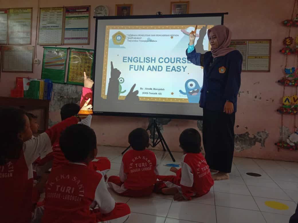 Kabar1Lamongan.com – Pada masa pandemi yang belum juga kunjung usai, Universitas trunojoyo madura tak sedikitpun mengurangi kewajibannya untuk melakukan pengabdian pada masyarakat, yaitu melalui program Kuliah Kerja Nyata TEMATIK Universitas Trunojoyo Madura 2021 atau biasa disingkat KKN-T UTM 2021. Kegiatan yang dilaksanakan pada hari sabtu (4/12/2021) melibatkan teman-teman KKN-T 42 UTM 2021 untuk membantu dalam menjalankan program English Course. Program kerja ini dilaksanakan di TK eka sakti Turi, kecamatan Maduran Kabupaten Lamongan. yang di dampingi oleh Dosen Pembimbing Lapangan (DPL) Bapak Mahrus Khoirul Umami, P. Hd.