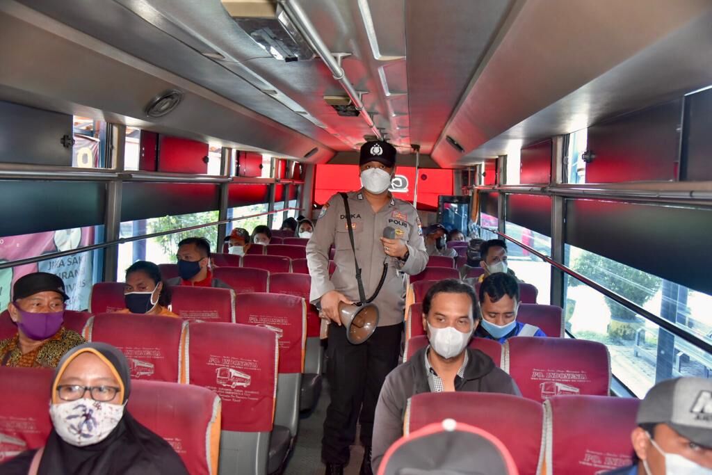 “Diharapkan seluruh warga masyarakat untuk tidak bosan dan tidak lengah dengan selalu mentaati protokol kesehatan dengan tetap menerapkan 5M dan untuk para penumpang Bus yang merasa belum di vaksin agar segera mendatangi fasilitas kesehatan terdekat untuk mendapatkan vaksin secara gratis.” Tutupnya.
