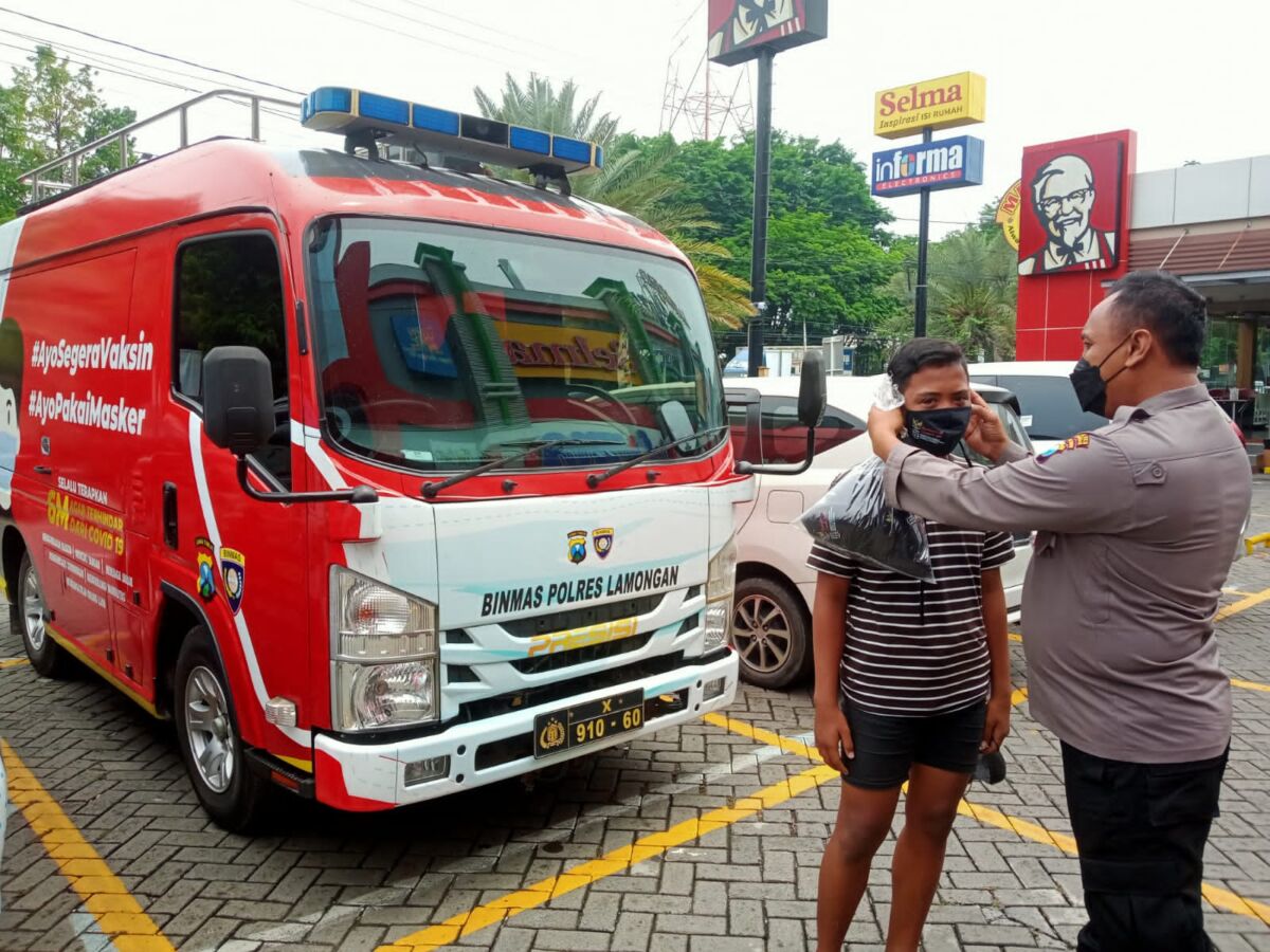 Dalam hal ini, Sat Binmas Polres Lamongan melaksanakan giat Mobile Masker dimana Anggota Binmas memberikan masker secara gratis sekaligus memberikan penyuluhan dan pembinaan kepada warga masyarakat atau calon penumpang di sekitar Halte Bus dan Depan Plaza Lamongan dengan tujuan agar lebih memahami serta mewaspadai virus yang tak kunjung musnah tersebut.