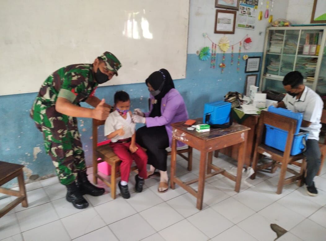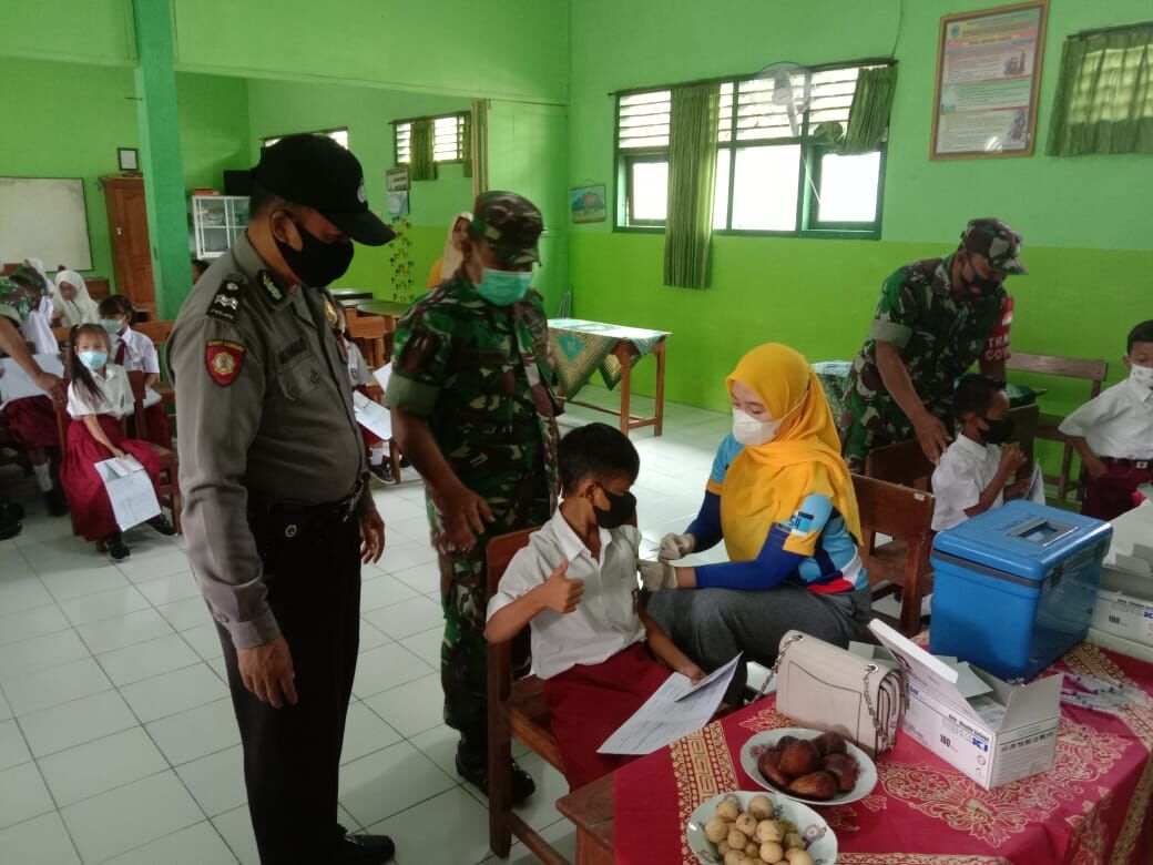 Jadi selain untuk memastikan kelancaran dan ketertiban pelaksanaan vaksinasi, kehadiran kami disini sekaligus memberikan semangat kepada penerima vaksin agar tidak takut untuk disuntik vaksin. Terlebih sasaran vaksinasi kali ini adalah anak usia 6-11 tahun,” ucapnya.