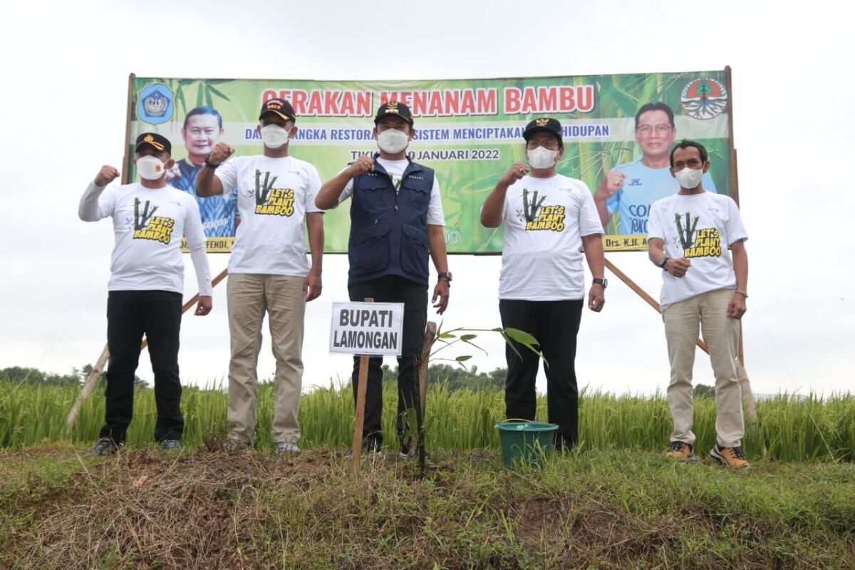 Tak hanya itu Bupati lamongan juga menyampaikan Gerakan Menanam Bambu dalam rangka Restorasi Ekosistem Menciptakan Penghidupan dengan mengetuk pintu langit melalui penanaman pohon bambu, ungkap Bupati.