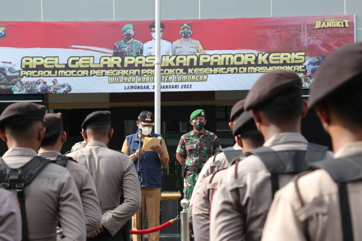Kegiatan ini dilakukan dalam rangka mengantisipasi prediksi dari ahli Epidemiologi yang menyatakan, bahwa puncak penyebaran Covid-19 varian Omicron ada di bulan Februari dan Maret. Pamor Keris (Patroli Motor Penegak Kesehatan di Masyarakat) merupakan pasukan gabungan yang akan melakukan patroli secara mobile (keliling) dan berkala di seluruh wilayah Kabupaten Lamongan.
