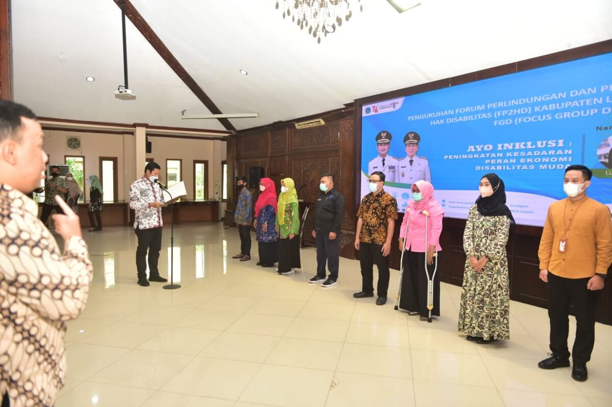 kabar1Lamongan.com – Melalui Pengukuhan Forum Perlindungan dan Pemenuhan Hak Disabilitas (FP2HD) Kabupaten Lamongan, Pemerintah Kabupaten Lamongan memberi ruang seluas-luasnya kepada para penyandang disabilitas di Kabupaten Lamongan untuk menyalurkan berbagai inovasi dan kreatifitas untuk bersinergi membangun Kejayaan Lamongan yang Berkeadilan.