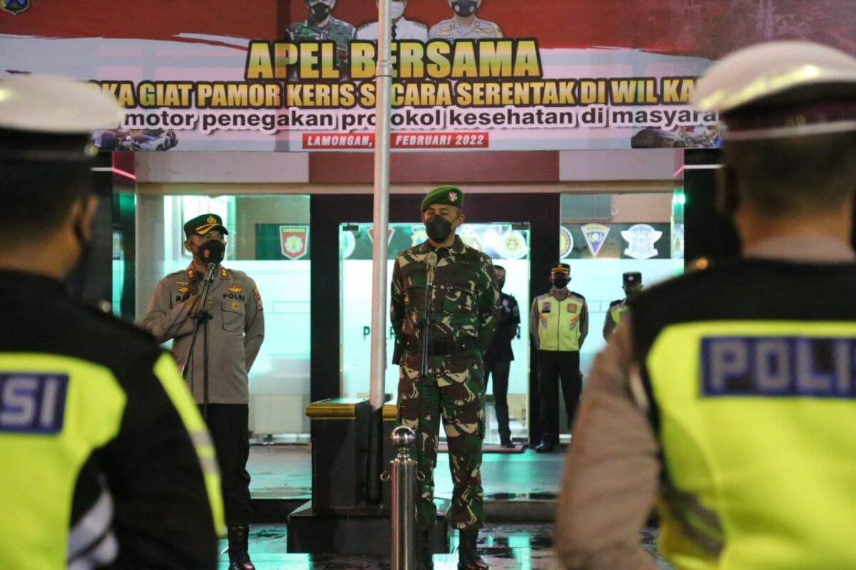 Apel gelar pasukan pamor keris dipimpin langsung oleh Kapolres Lamongan AKBP Miko Indrayana bersama Dandim 0812 Lamongan Letkol Kav Endi Siswanto Yusuf, di ikuti oleh jajaran anggota Polres, Kodim 0812, Satpol PP, Damkar, Dishub dan Dinkes Kabupaten Lamongan pada Jum’at (11/02) malam di halaman Mapolres Lamongan. sabtu 12/02/2022