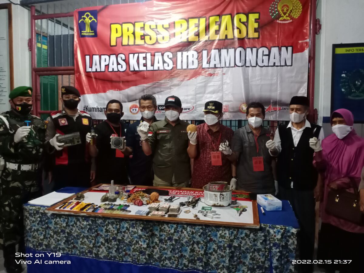 Kabar1lamongan.com – Dalam rangka deteksi dini pencegahan dan penanggulangan gangguan Kamtib serta demi mewujudkan pembangunan Zona integritas, maka Lapas Lamongan Kanwil Kemenkumham Jatim menggandeng stakeholder terkait untuk menggelar razia gabungan kamar hunian Warga Binaan Pemasyarakatan (WBP). Selasa malam, (15/02/2022).