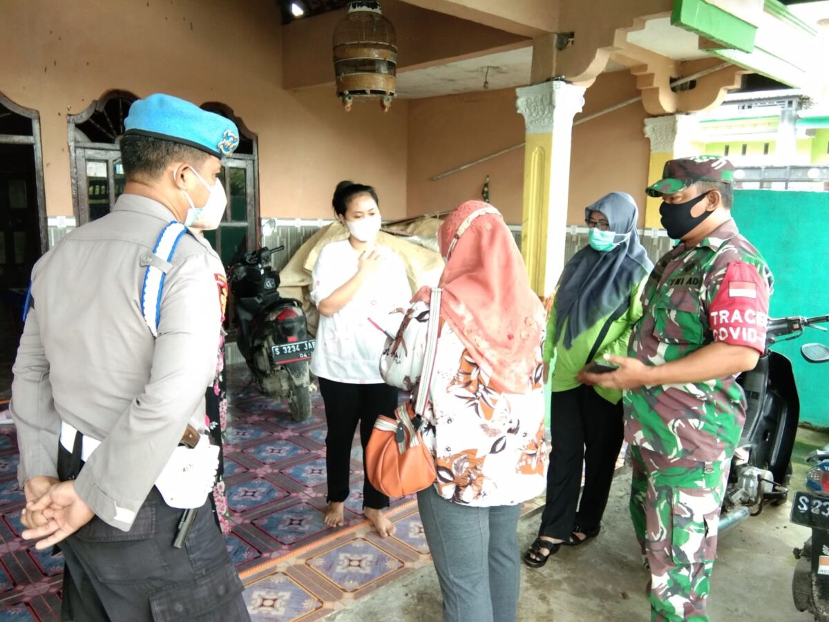 Hadirnya Babinsa Koramil 0812/04 Tikung bersama dengan tim Tracing ke rumah warga yang sedang menjalani isolasi mandiri untuk memastikan keamanan dan kesehatan keluarga pasien yang terpapar virus Covid-19.