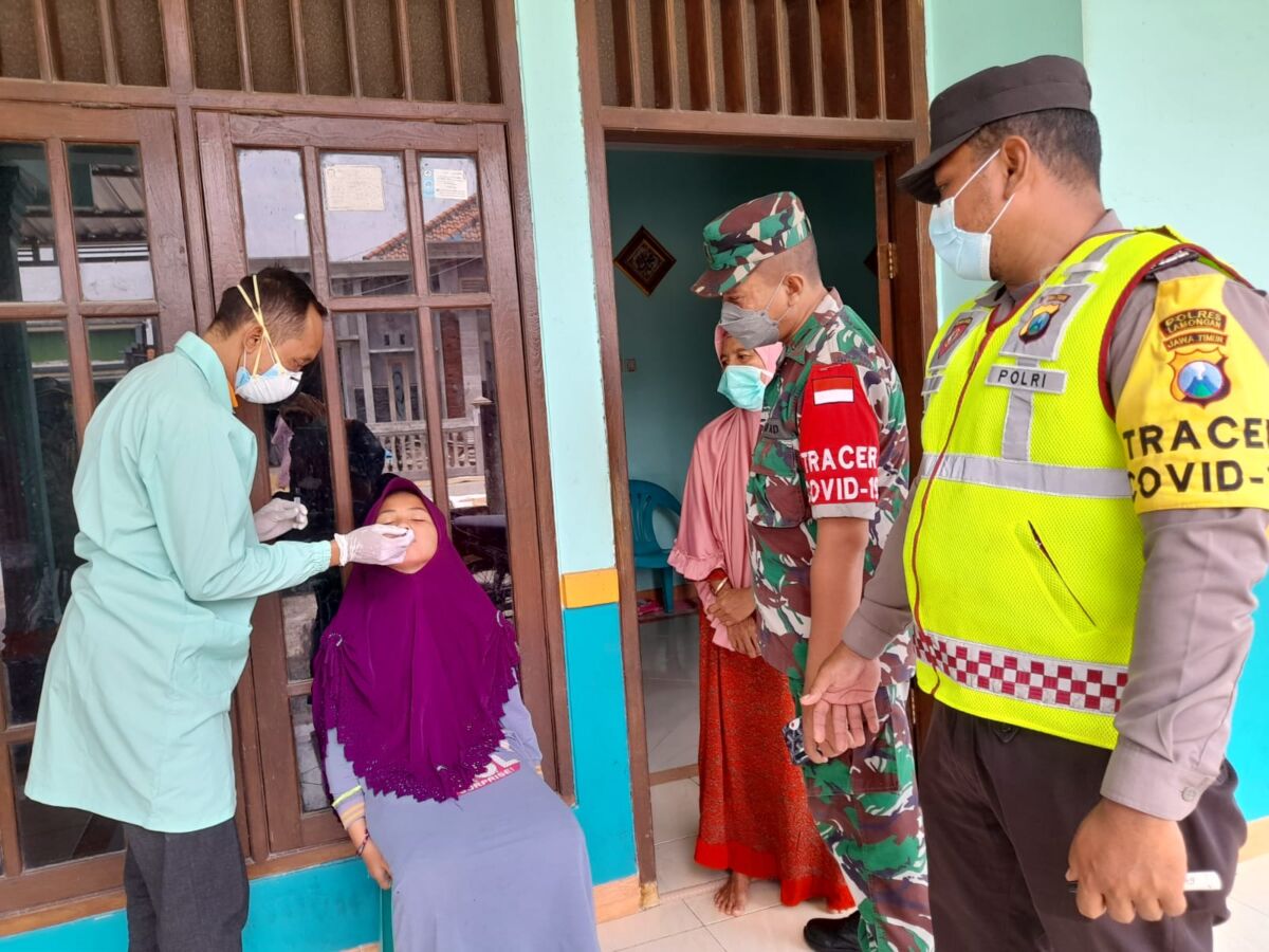 Kabar1Lamongan.com – Anggota Bintara Pembina Desa (Babinsa) Koramil 0812/05 Kembangbahu, Serda Lukman dari jajaran Kodim 0812 Lamongan bersama Bhabinkamtibmas melakukan pendampingan terhadap petugas tracing contact Covid-19.