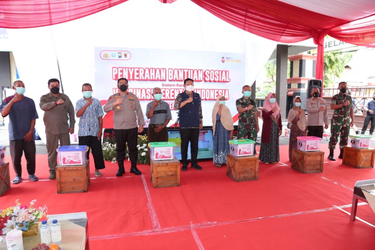 Foto : Penyerahan BANSOS kepada warga sekitar oleh Wakapolda Jatim didampingi jajaran Forkompinda Kabupaten Lamongan.