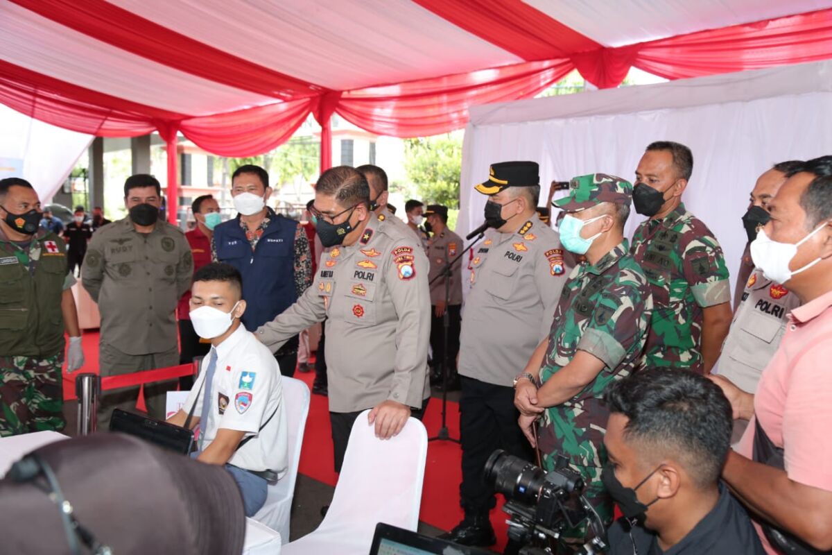 Wakapolda Jatim Hadir Tinjau Pelaksanaan Vaksin Serentak se-Indonesia di Halaman Polres Lamongan.