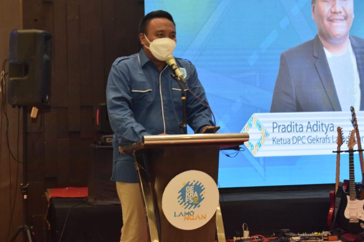 Sedangkan sambutan dari ketua DPC lamongan Pradita Aditya menekankan komitmenya terhadap pembangunan sektor industri kreatif di lamongan.