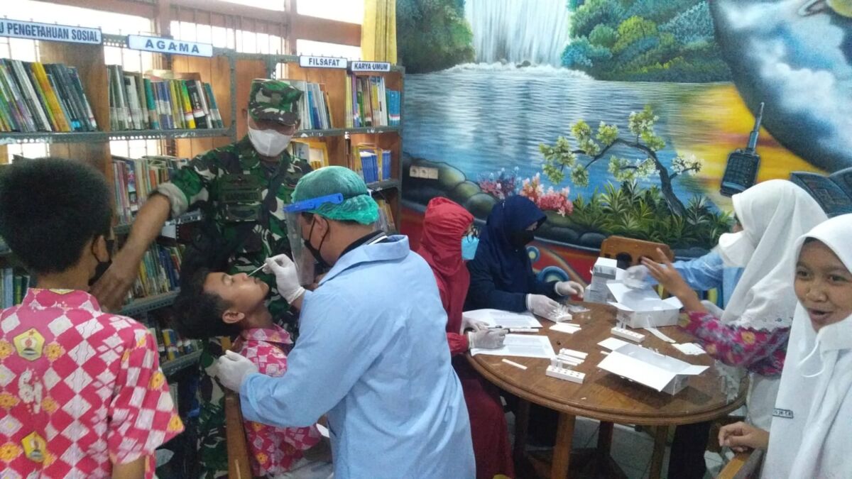 SMP Negeri 1 Pucuk Dalam Pelaksanaan Swab Tes Pada Siswa didampingi Babinsa dan Bhabinkamtibmas.
