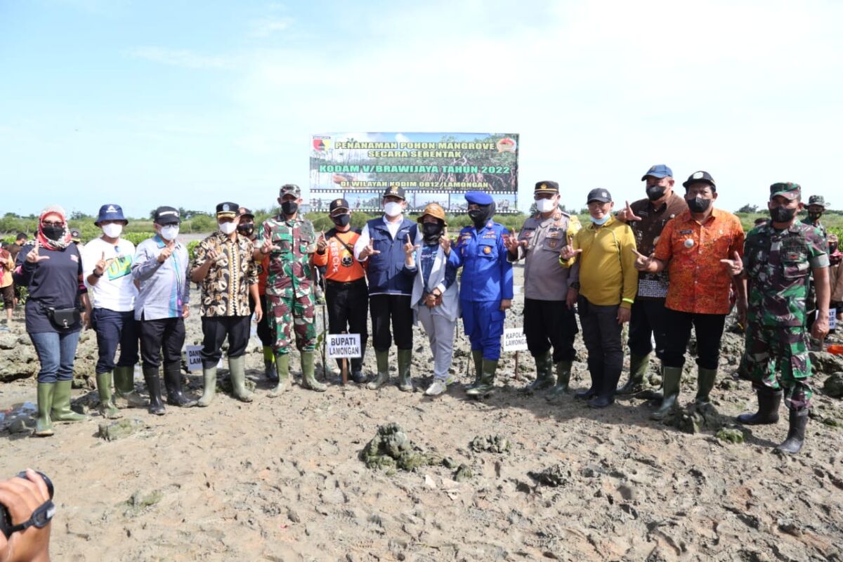 Kodim 0812/Lamongan Tanam Mangrove Serentak Dan Vidcon Tersebar Di Jajaran Kodam V/Brawijaya.