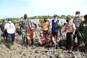 Kodim 0812/Lamongan Tanam Mangrove Serentak Dan Vidcon Tersebar Di Jajaran Kodam V/Brawijaya
