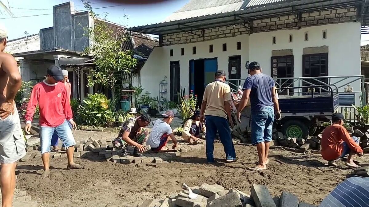 Seperti halnya yang dilakukan Babinsa Desa Sidomukti Serka Rahmanto anggota Koramil 0812/05 Kembangbahu jajaran Kodim 0812 Lamongan bersama masyarakat lingkungan Desa Sidomukti Kecamatan Kembangbahu Kabupaten Lamongan melakukan kerja bakti pemasangan paving jalan desa, Senin (21/03/2022).