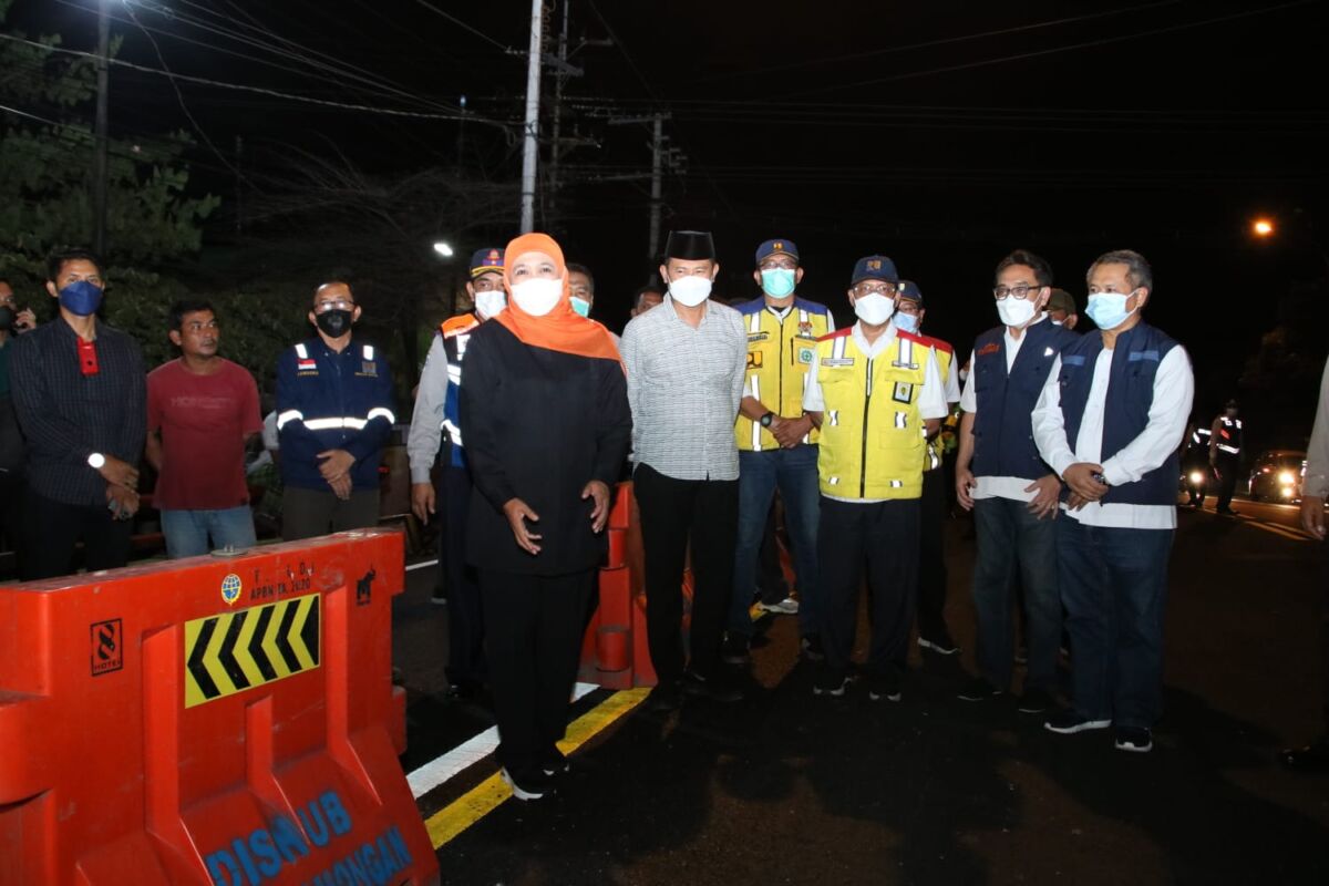 Hadir memastikan jembatan layak dan aman untuk kembali beroperasi, Gubernur Jawa Timur Khofifah Indar Parawansa mengungkapkan bahwa dengan tuntasnya proses perbaikan tersebut, maka layanan percepatan logistik harus dapat terpenuhi sebelum lebaran.