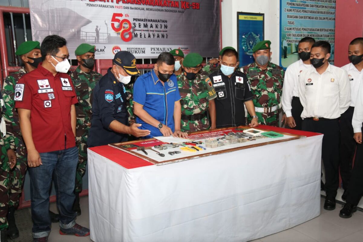 Kabar1Lamongan.com -Lapas Klas IIB Lamongan bersama aparat gabungan TNI Polri jajaran Kodim 0812 Lamongan dan polres lamongan, melakukan razia dibulan ramadhan kepada kamar hunian warga binaan Pemasyarakatan (WBP), sabtu malam. Minggu (24/4/2022)