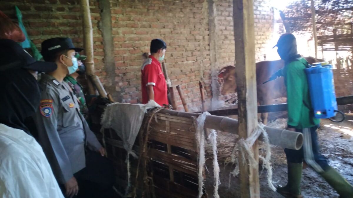 Babinsa Mantup : Pengecekan Kondisi ternak sekaligus melakukan penyemprotan disinfektan