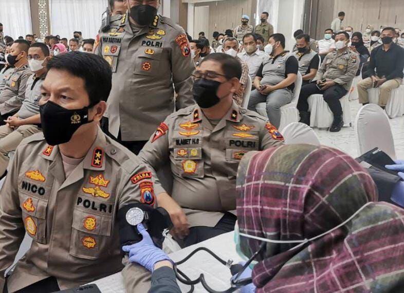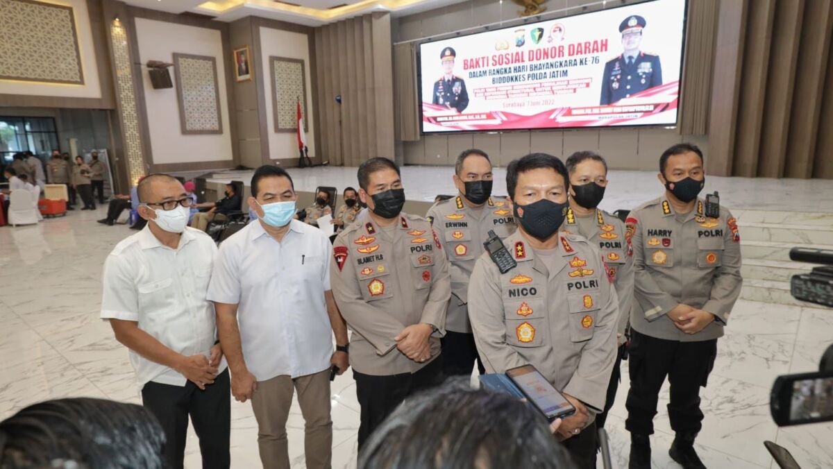 Dalam kesempatan tersebut, Kapolda Jawa Timur Irjen Pol Nico Afinta, Wakapolda Jatim Brigjen Pol Slamet Hadi Supraptoyo, pejabat utama polda jatim serta personil polda jatim baik Polri dan PNS serta ibu Bhayangkari turut serta melaksanakan donor darah.